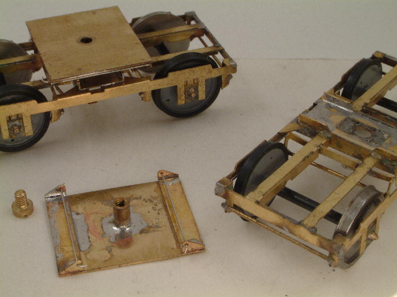 A pair of Bill's 9ft wheelbase bogies, with Bill's latest secondaries fitted, with the self-containing plate.
