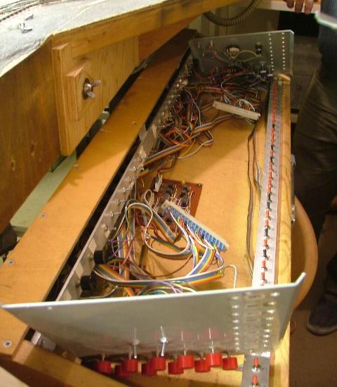 Green Street's electronics are a bit complicated. Here's a picture of the underside of the main baseboard.